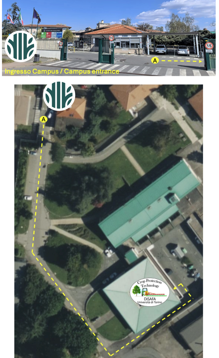 Exit “Corso Allamano”, continue in the direction of Torino. At the second traffic light, turn left onto Via Leonardo da Vinci. Continue straight until you reach the entrance to the Department.